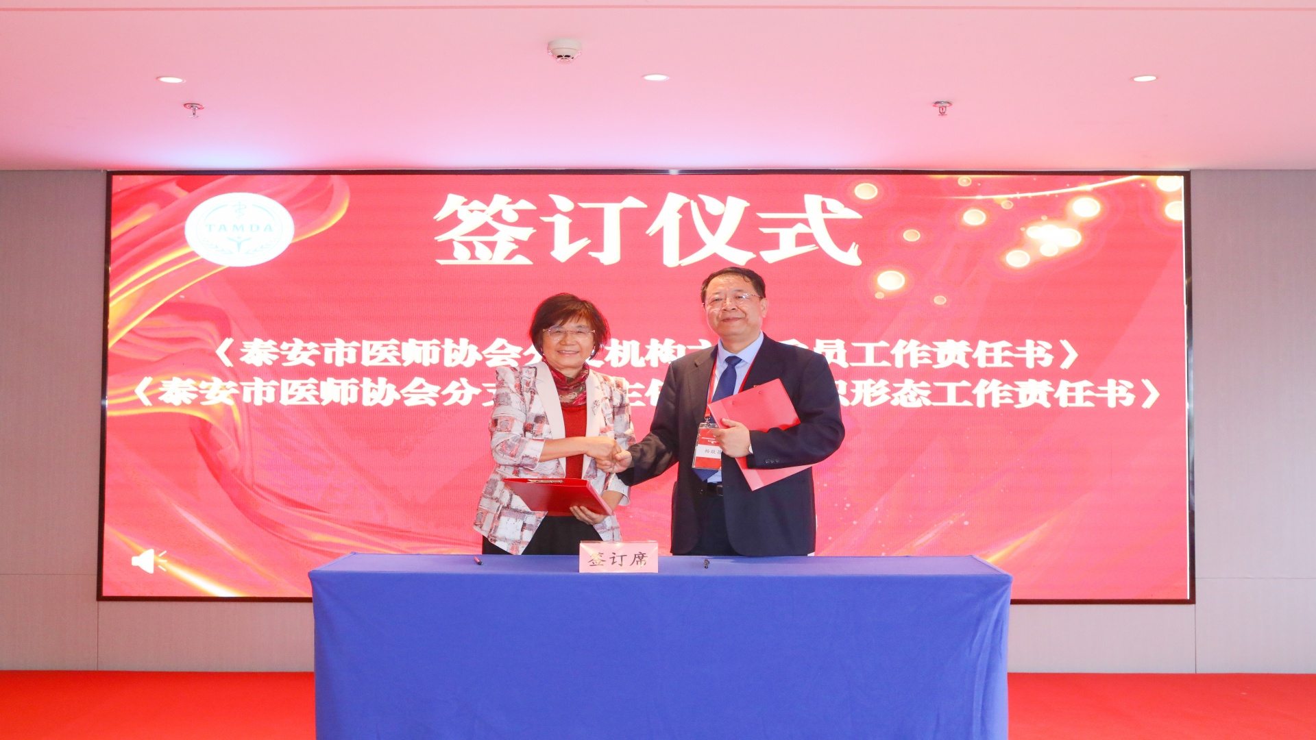 ? ? ? ? 作為首屆眼科醫(yī)師分會(huì)第一發(fā)起人、籌備委員會(huì)負(fù)責(zé)人,楊敬昌在會(huì)議伊始就詳細(xì)匯報(bào)了分會(huì)籌備情況,為分會(huì)的順利成立奠定了堅(jiān)實(shí)基礎(chǔ)。會(huì)議期間,還完成了泰安市醫(yī)師協(xié)會(huì)眼科醫(yī)師分會(huì)第一屆委員會(huì)選舉、頒發(fā)聘書等重要議程,楊敬昌現(xiàn)場簽訂《泰安市醫(yī)師協(xié)會(huì)分支機(jī)構(gòu)工作責(zé)任書》與《泰安市醫(yī)師協(xié)會(huì)分支機(jī)構(gòu)意識(shí)形態(tài)工作責(zé)任書》,以嚴(yán)謹(jǐn)態(tài)度扛起分會(huì)建設(shè)與發(fā)展的重任。
